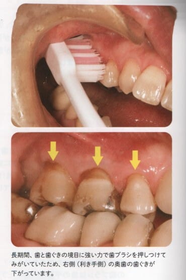ご自分の歯みがきに過剰な力が入っていないかや、歯ブラシの動かし方などは、歯医者さんに行ったときに、歯科衛生士に見てもらうとよいでしょう。
