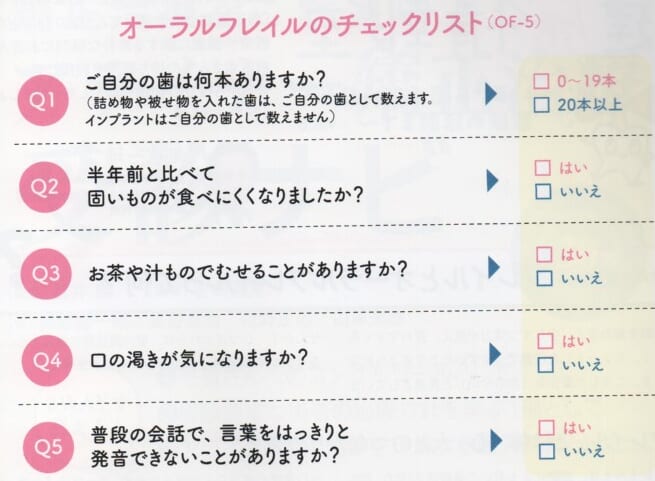 2つ以上当てはまった方はオーラルフレイルになっています(>_<;)
